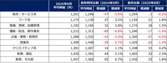 - 全国平均時給、前年同月・前月比いずれもプラスに。- 職種別では「教育、その他」で、前年同月比+92円の大幅上昇。