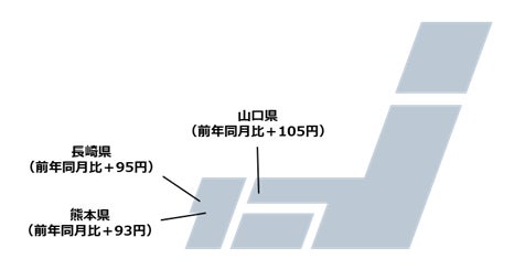 - 前年同月比の上昇額が大きい都道府県は、山口県、長崎県、熊本県。