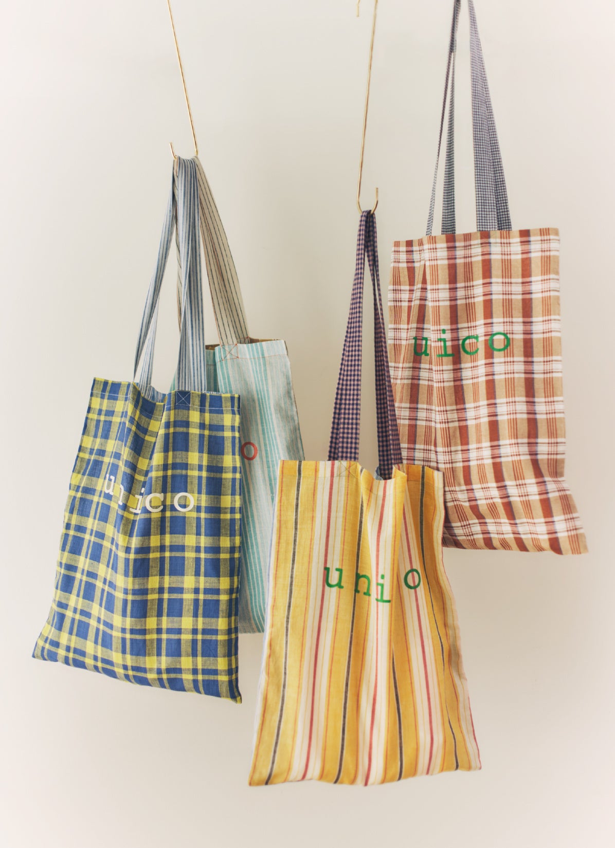 今回のノベルティには商品制作時に出る端切れを再利用した、サステナブルな限定デザインのトートバッグを採用。unico公式アプリをダウンロード&会員登録の上、1,000円(税込)以上商品をご購入の方にプレゼントします。