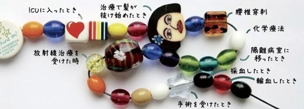 ビーズ・オブ・カレッジ プログラムは、小児がんと闘う子どもたちが、手術や投薬治療などの辛い治療に前向きに臨み、勇気を持って治療を乗り越える過程をビーズで記録していくプログラムです。一つ一つのビーズには意味があり、治療ごとに決まったビーズを、子どもと医療従事者が共につないでいくことで辛い治療を頑張って乗り越えたという前向きな気持ちに変換するお手伝いをします。