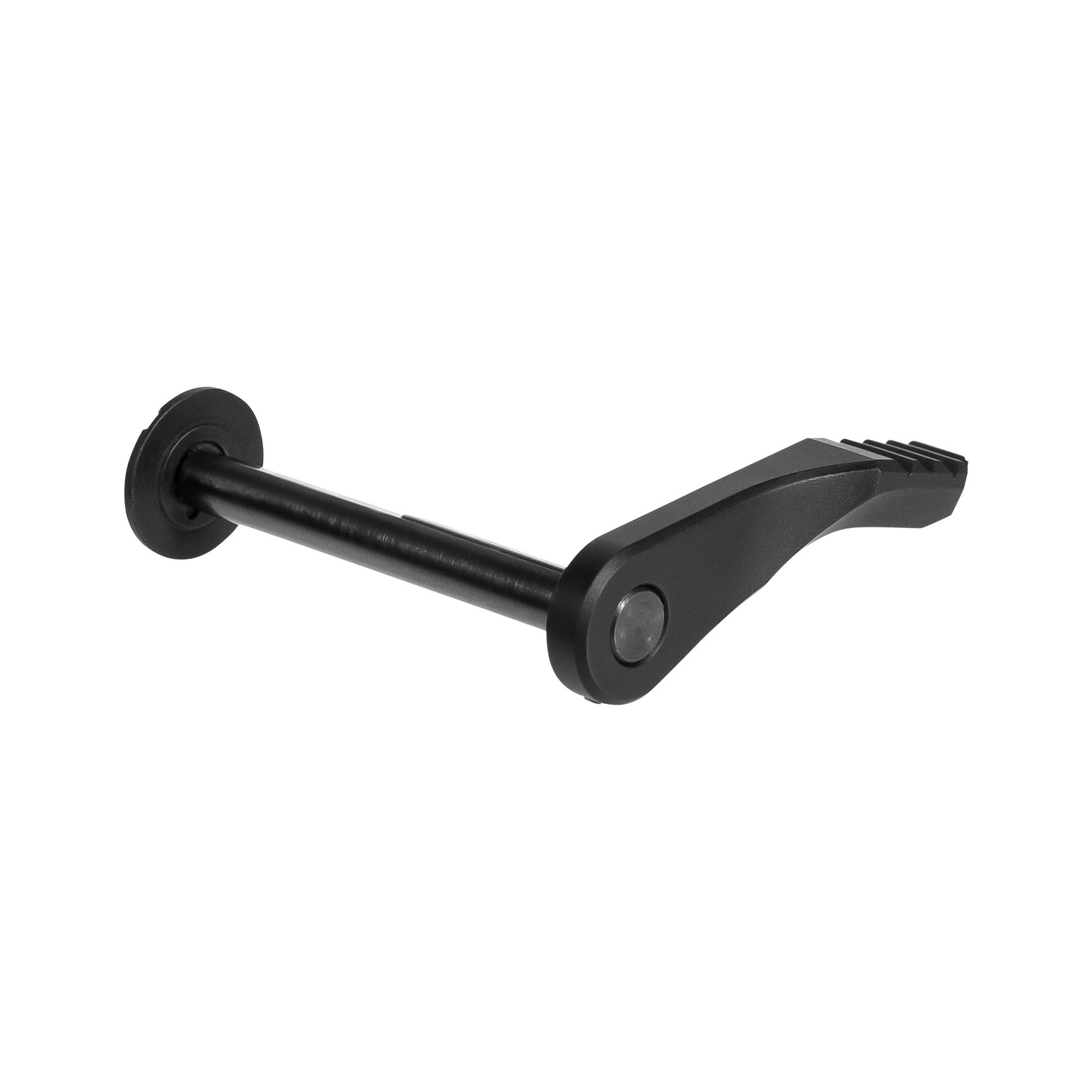 本製品は、左セレクターをロープロファイル&ショート化し、意図しない接触リスクを低減。特にフルオートポジション時の親指干渉を抑え、スリングやプレートキャリアとの接触もミニマムに。右側はレバーをオミットしインジケーター化することで、トリガーフィンガーへの物理的干渉を根本排除。