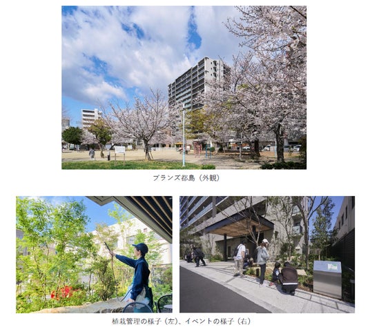 また、地域に生息する動植物の情報を収集するイベントを通じて、居住者が自然環境に関心を持つきっかけを提供している点も注目に値する。収集された生物データは植栽管理に活用され、薬剤使用の抑制など環境への配慮が実現されている。さらに、敷地北側の公開空地には四季を感じられる植栽や遊具を設け、地域住民にも開かれた憩いの場として機能している。エントランスには木調ルーバーやガラス壁を採用し、建物内外の緑が連続するような設計が施されており、視覚的に自然との一体感が感じられる。本プロジェクトは、居住者の生活利便性と環境意識の向上を両立させる工夫が随所に見られ、都市生活における新たな価値の提案として評価に値する取り組みである。