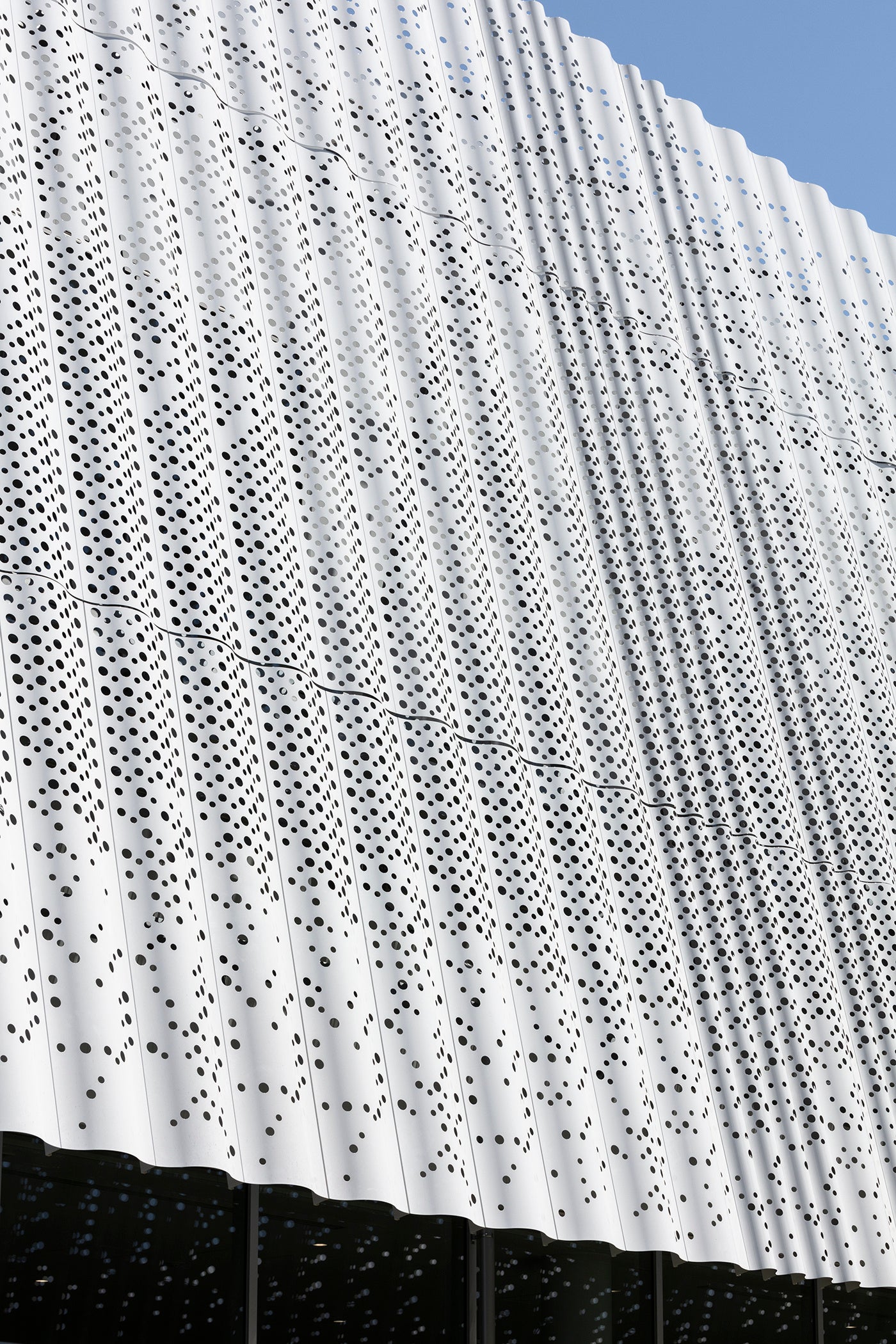 滋賀県の琵琶湖周辺で長く愛用されてきた天然素材の葦(よし)を使用した「葦簀(よしず)」をモチーフに、強い陽ざしを遮断しながら心地よく風を通す機能を持たせた「YOSHIZU SKIN」。地域共生の取り組みの一つとしてエクステリアに採用。