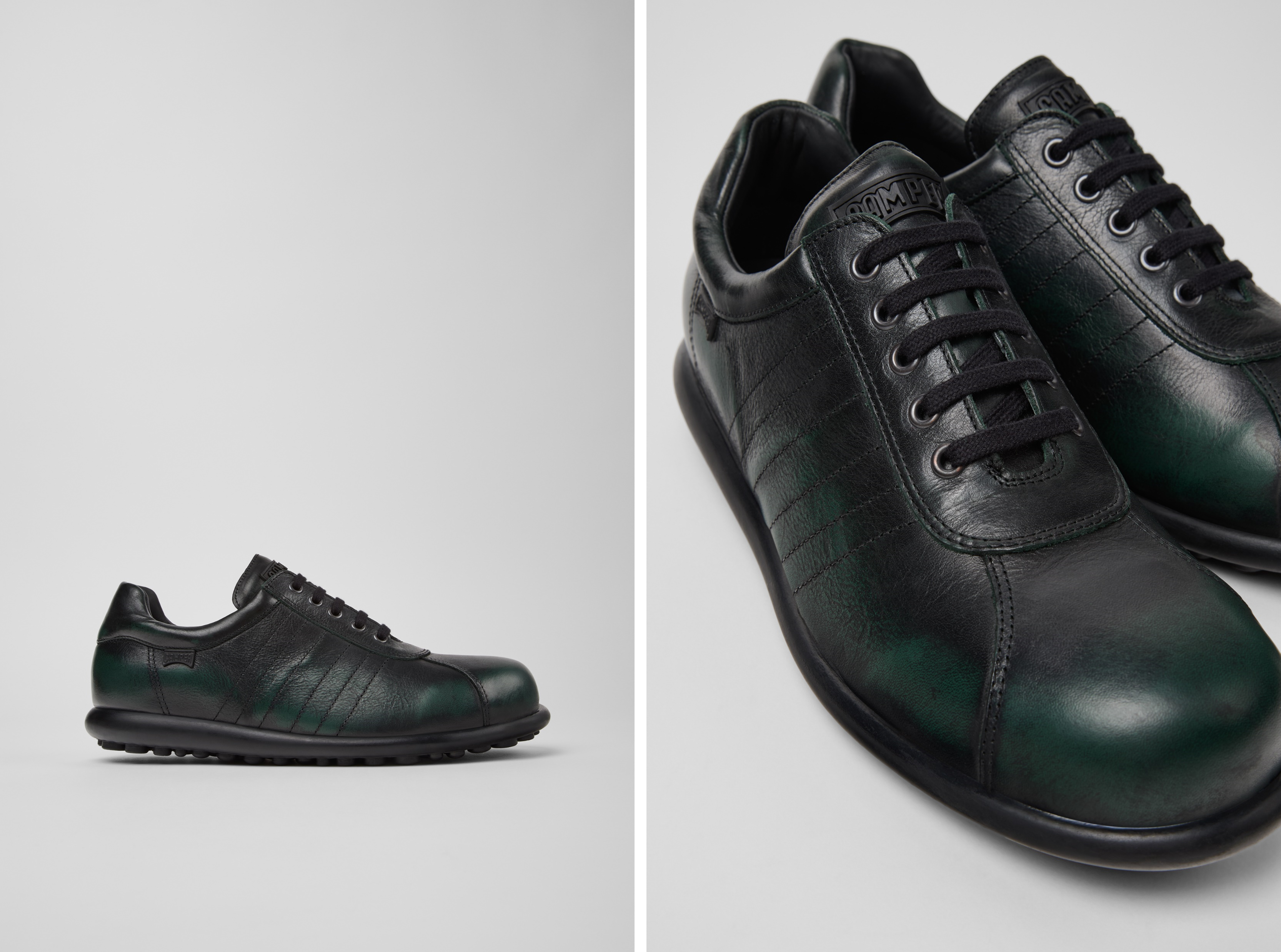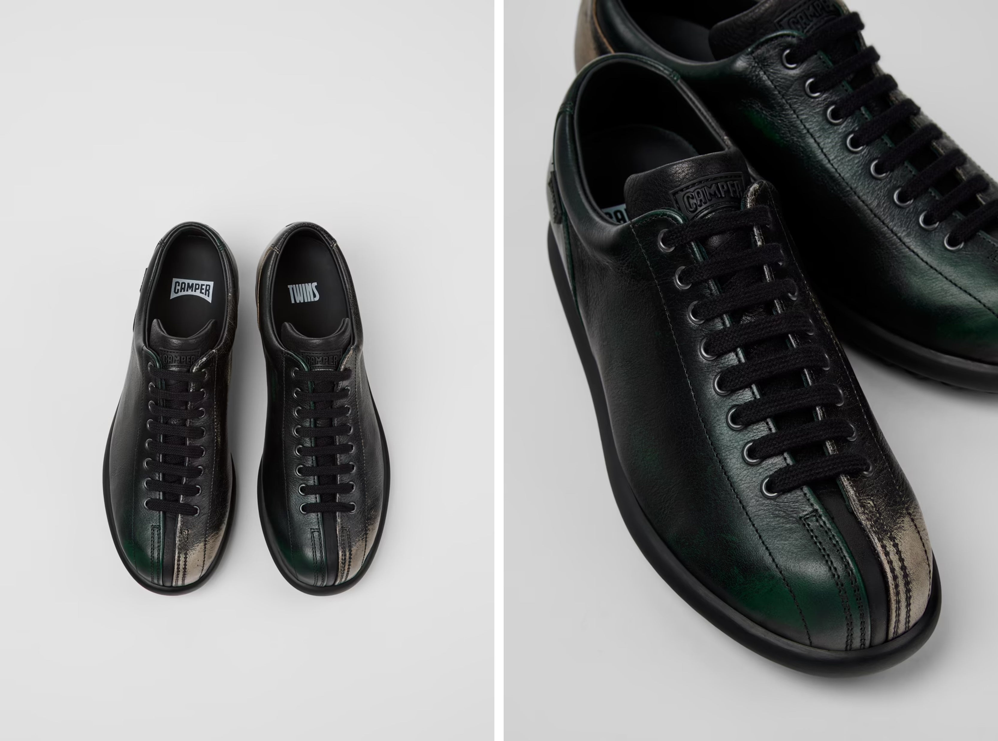 2025AWコレクションでは、手作業によるブラッシュ仕上げのモデルに加え、90年代のCAMPERアーカイブに基づいたボクシングブーツ風のスタイルも登場します。ブラック×グリーンなどの新しいバイカラーモデルや、シーズナルカラーを使用したTWINS(ツインズ)モデルもラインナップに加わります。