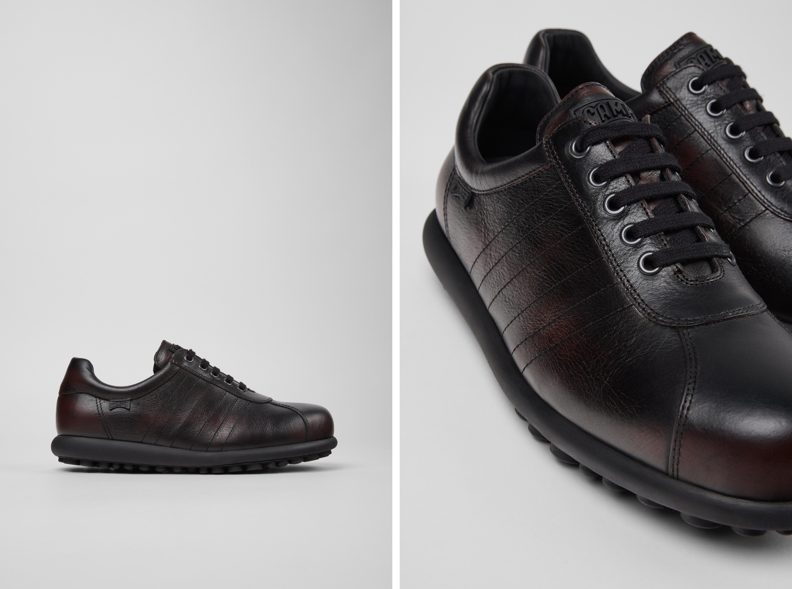 PELOTAS ARIELはヨーロッパ製にこだわり、耐久性に優れた素材を使用しています。87個のラバーボールで構成されたアウトソールは、ヨーロッパ産の植物タンニンなめし革(LWG認証)を使用したアッパーと360度ステッチで縫い合わされています。この伝統的な製法のレザーシューズは、CAMPERのタイムレスなデザインにおける耐久性、品質、職人技への自信を物語っています。