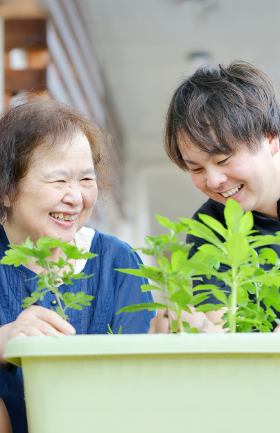 「いえ」は、ご利用者様がこれまで育んできた暮らしや思い出を守りながら、安心して療養生活を続けられる場所です。「Let’s!」では、自宅での生活を切れ目なく支えるシームレスな在宅サービスを提供します。