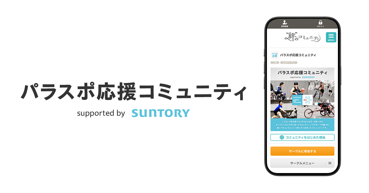 今回開設する「パラスポ応援コミュニティ Supported by SUNTORY」は、パラスポーツに興味がある方も、初めて知る方も、誰でも無料で参加できるオンラインコミュニティです。パラスポーツやアスリートについて知り、理解を深めることで、楽しみながら応援するきっかけを提供します。コミュニティでの生活者同士の対話を通じて、新たな気づきや共感を育み、パラスポーツのさらなる認知向上と普及・発展を目指しています。
