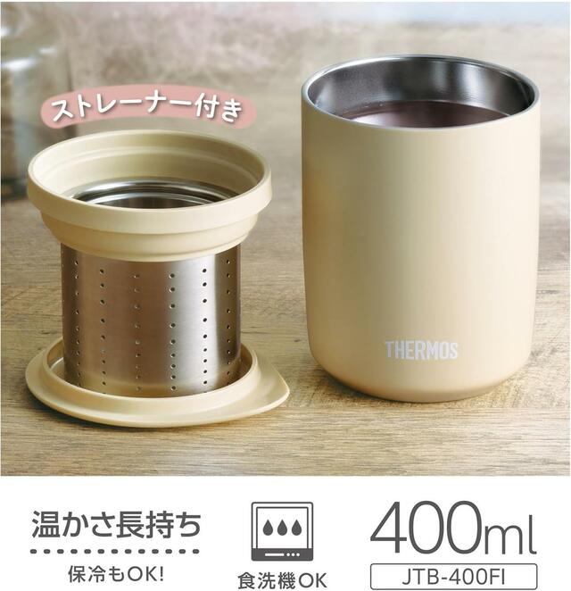 THERMOS(サーモス)の「真空断熱ティータンブラー JTB-400FI」は、ティーストレーナー付きで淹れたてのお茶をそのまま保温・保冷できるティータンブラー。