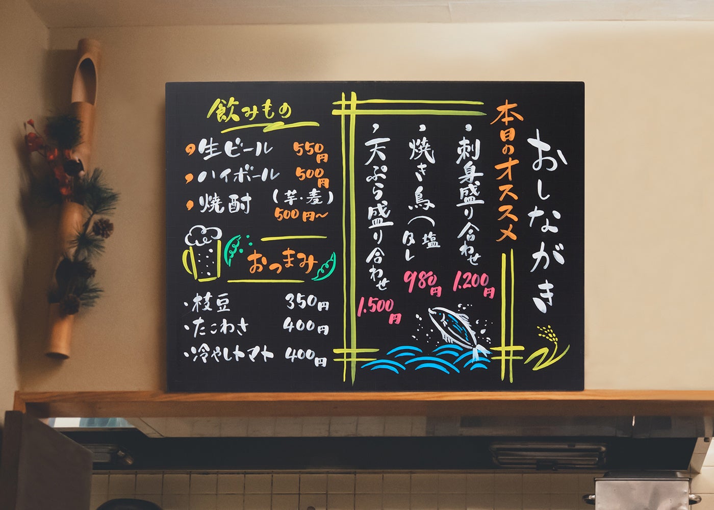 「とめ」「はね」「はらい」がしっかり表現できるため、漢字やひらがなを使う和食店のおしながきボードや、書道の練習用にも最適。