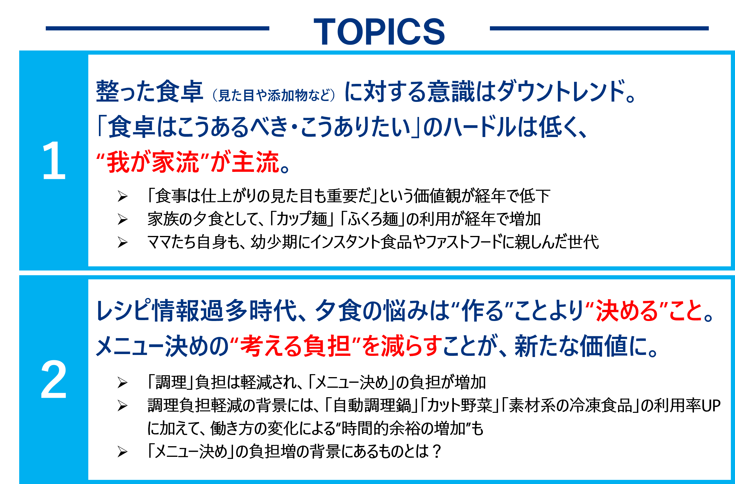 ~コロナ禍を経て変化した食卓事情~調理負担は軽減するも、メニュー決めの負担は増加。求められるのは、“決断疲れ”からの解放。