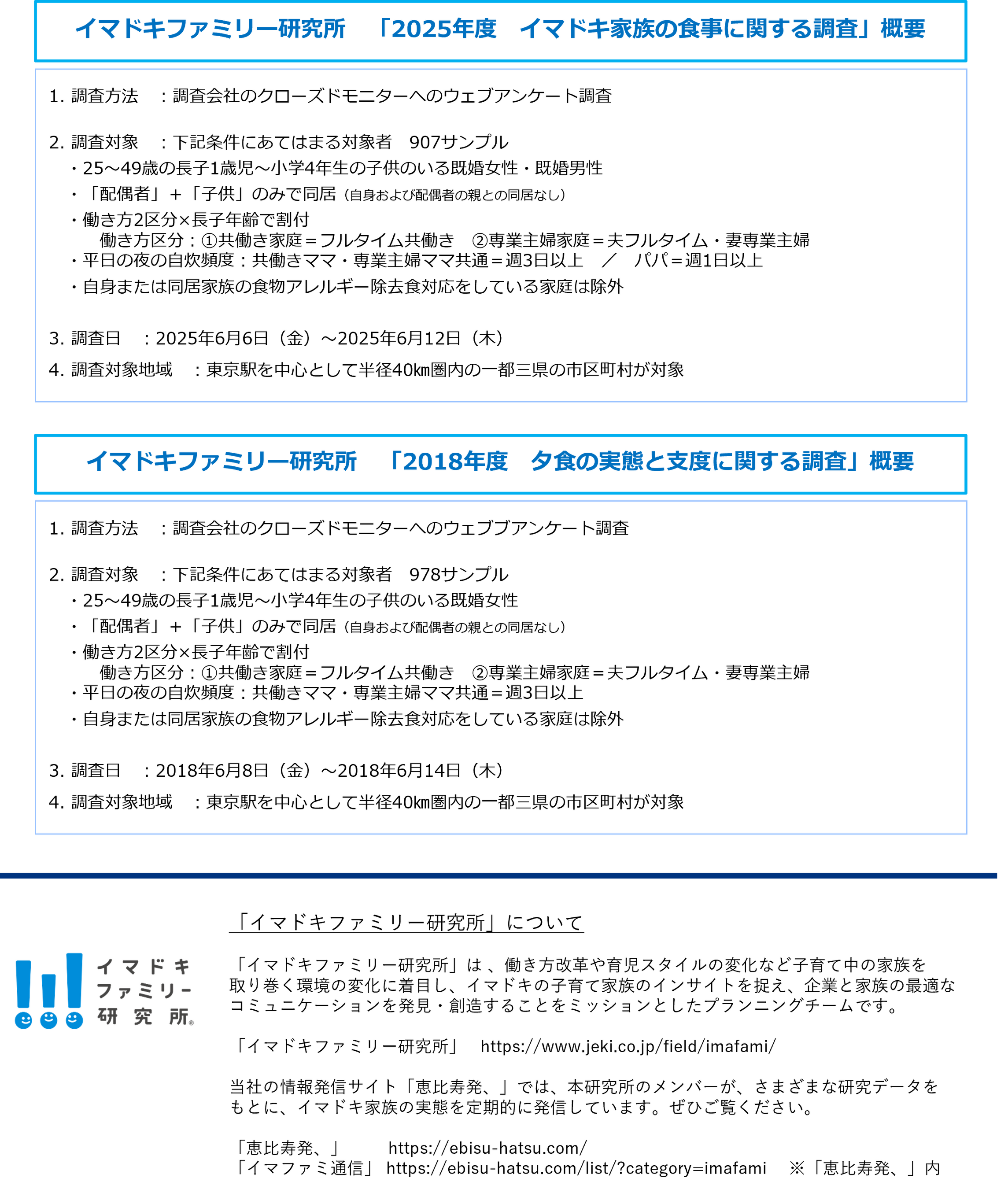 株式会社ジェイアール東日本企画 イマドキファミリー研究所では、子育て世帯の中で多数派となった共働き子育て家族を、新しい価値観を持つ「イマドキ家族」と位置づけて、研究を行っています。