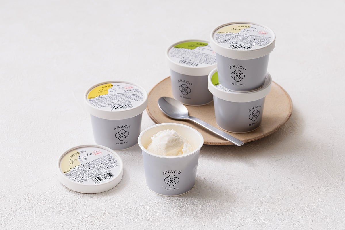 「乳酸発酵甘麹gelato」は、「乳酸発酵甘麹AMACO」のやさしい甘さと発酵の風味を活かし、濃厚でありながらもさっぱりとした後味が特徴。発酵のちからを取り入れた、からだにうれしいスイーツです。