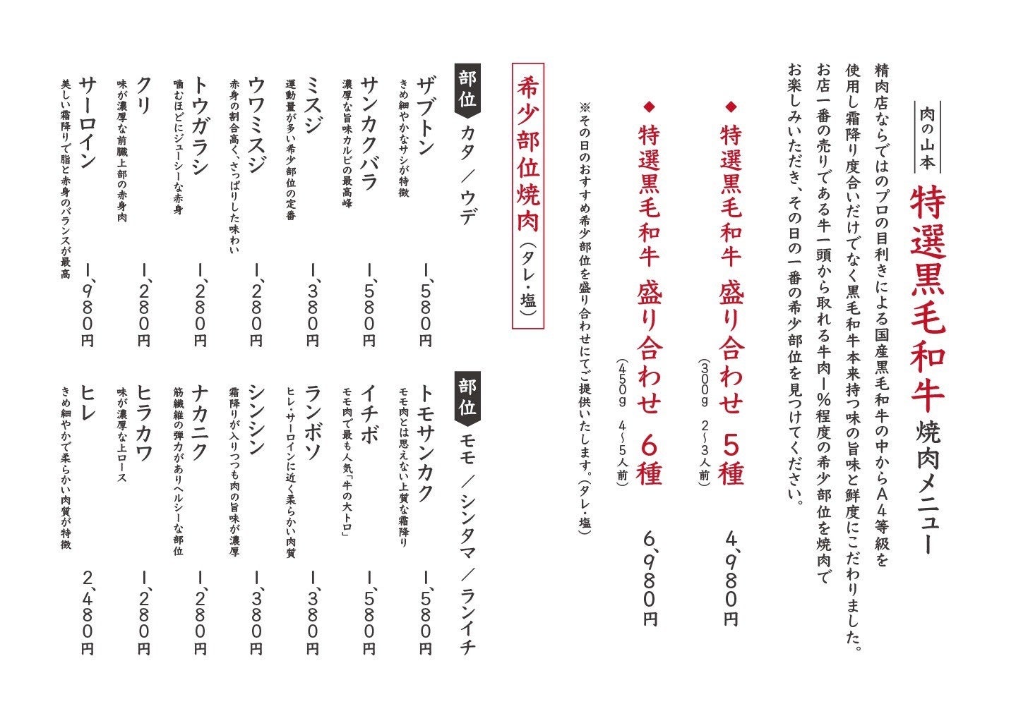 リニューアルオープンする「肉のやまもとの焼肉」では、長年培われた“精肉店ならではのプロの目利き”による、特選黒毛和牛をご提供いたします。