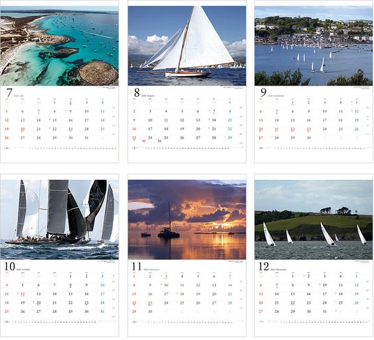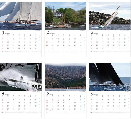 クラシカルなヨットから最新鋭のレース艇まで、さまざまなセールボートが毎月の暦を彩ります
