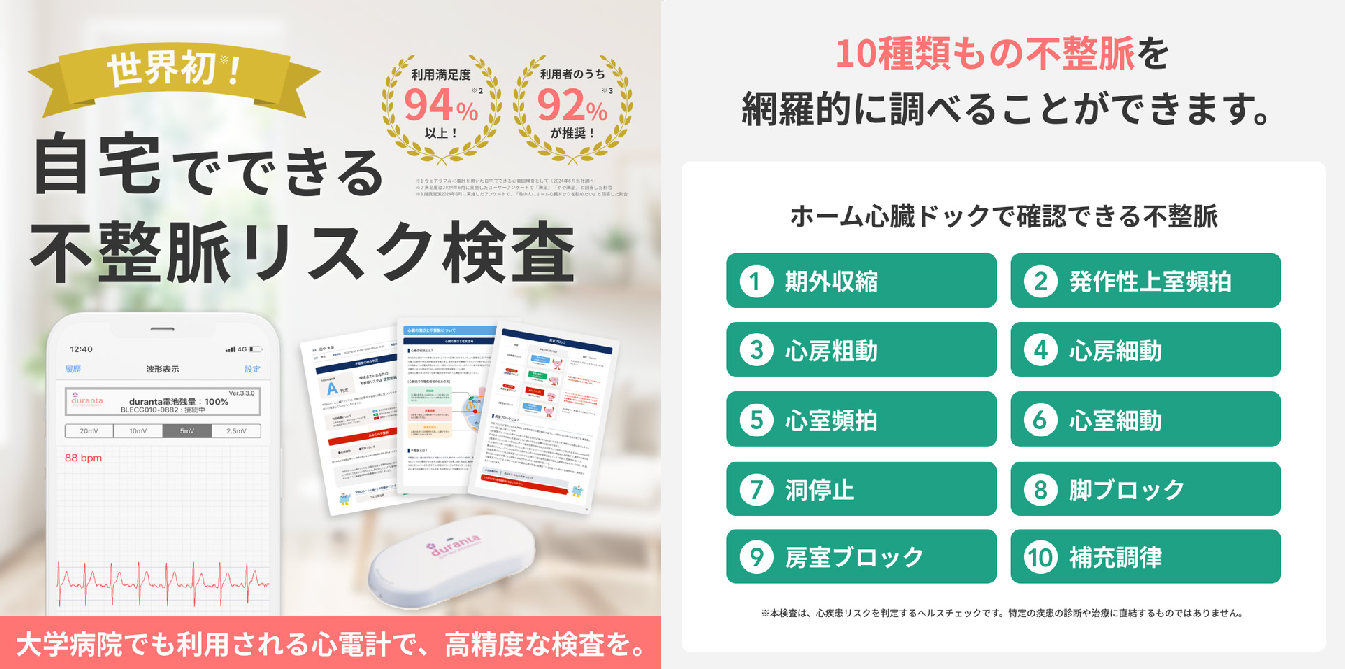 私たちは、自宅にいながら医療機関と同等の本格的な心電図チェックが手軽にできる「ホーム心臓ドック(R)」をはじめとする各種事業を展開しています。