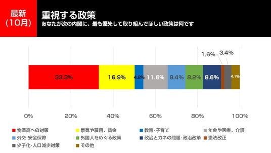 物価高対策、景気や雇用、賃金の最多2項目が約半数を占めました。