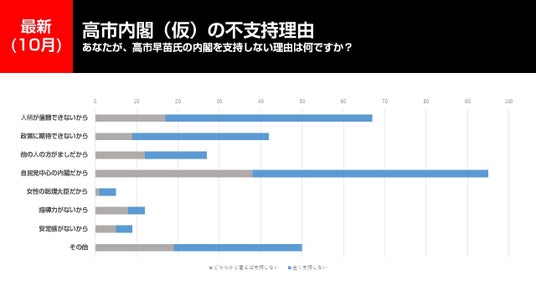 高市内閣(仮)を支持する理由は政策実現への期待感が大きかった一方、自民党への不信感が不支持につながる傾向が見られました。