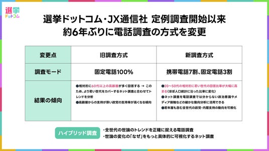 選挙ドットコムはJX通信社と共同で、10月11日(土)、12日(日)に日本国内の18歳以上の方を対象としたハイブリッド調査(電話調査とインターネット調査を同じ設問で同時に行う方式)による全国意識調査を実施しました。