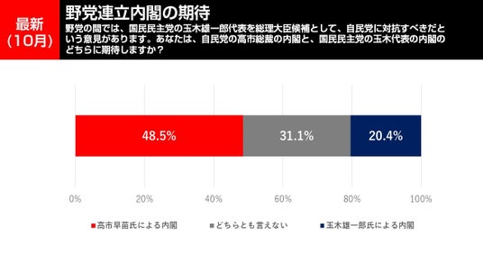 高市総裁の内閣が約半数を占め、玉木代表の内閣を大きく上回りました、
