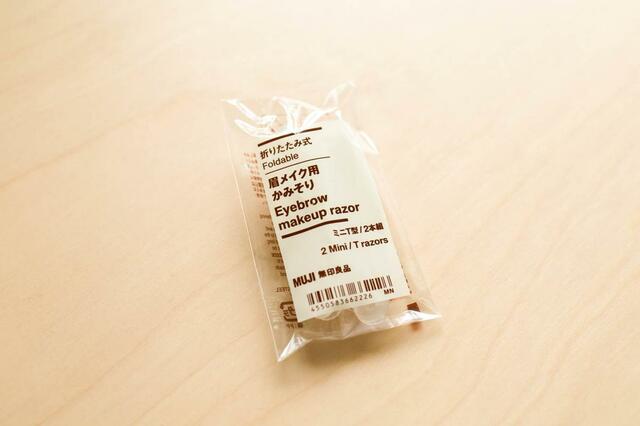 そんなふうに悩みつつ、普通のフェイス用のカミソリを使い続けていたある日、無印良品で見つけたのが「折りたたみ式 眉メイク用かみそり」。