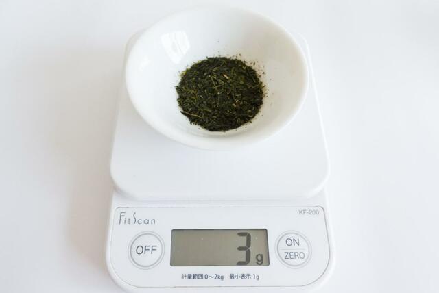 まずは茶葉を用意します。約3gで180ml淹れられるとのこと。1杯だとこんなに少量でいいんですね。