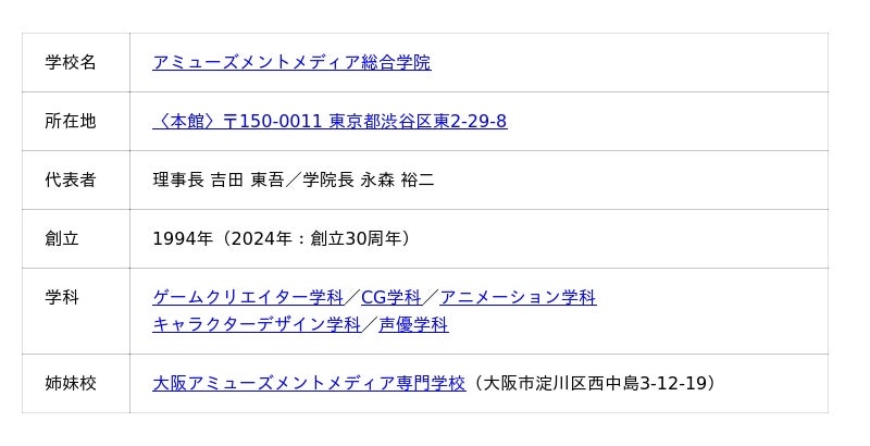 2年間でエンタテインメント業界の第一線で活躍できる‟即戦力”の育成を目的に、業界のプロの手で1994年に設立された本学院は、2024年で開校30周年を迎えました。AMGの最大の特徴は、「制作現場こそ、最高の教育現場である。」という創立以来の教育理念を基に、「産学共同・現場実践教育」の実現のために一般に流通する商業コンテンツを制作するAMGグループの事業部で業界経験が積めること。
