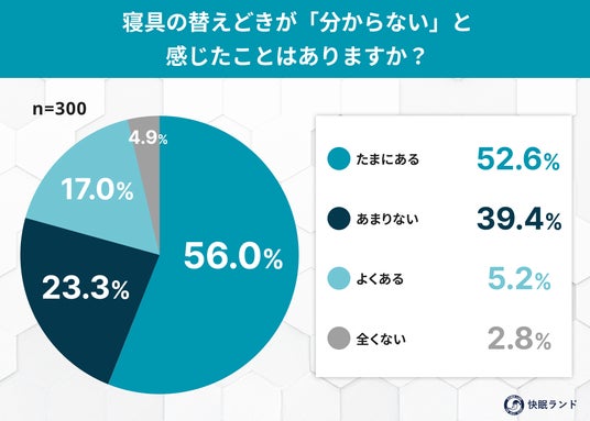 - 「寝具の替えどきが分からない」と感じたことがある人は約6割(56.0%)