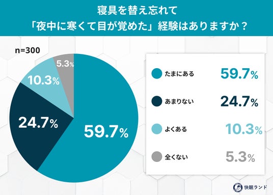 - 「替え忘れて夜中に寒くて目が覚めた」経験がある人は約7割(70.0%近く)