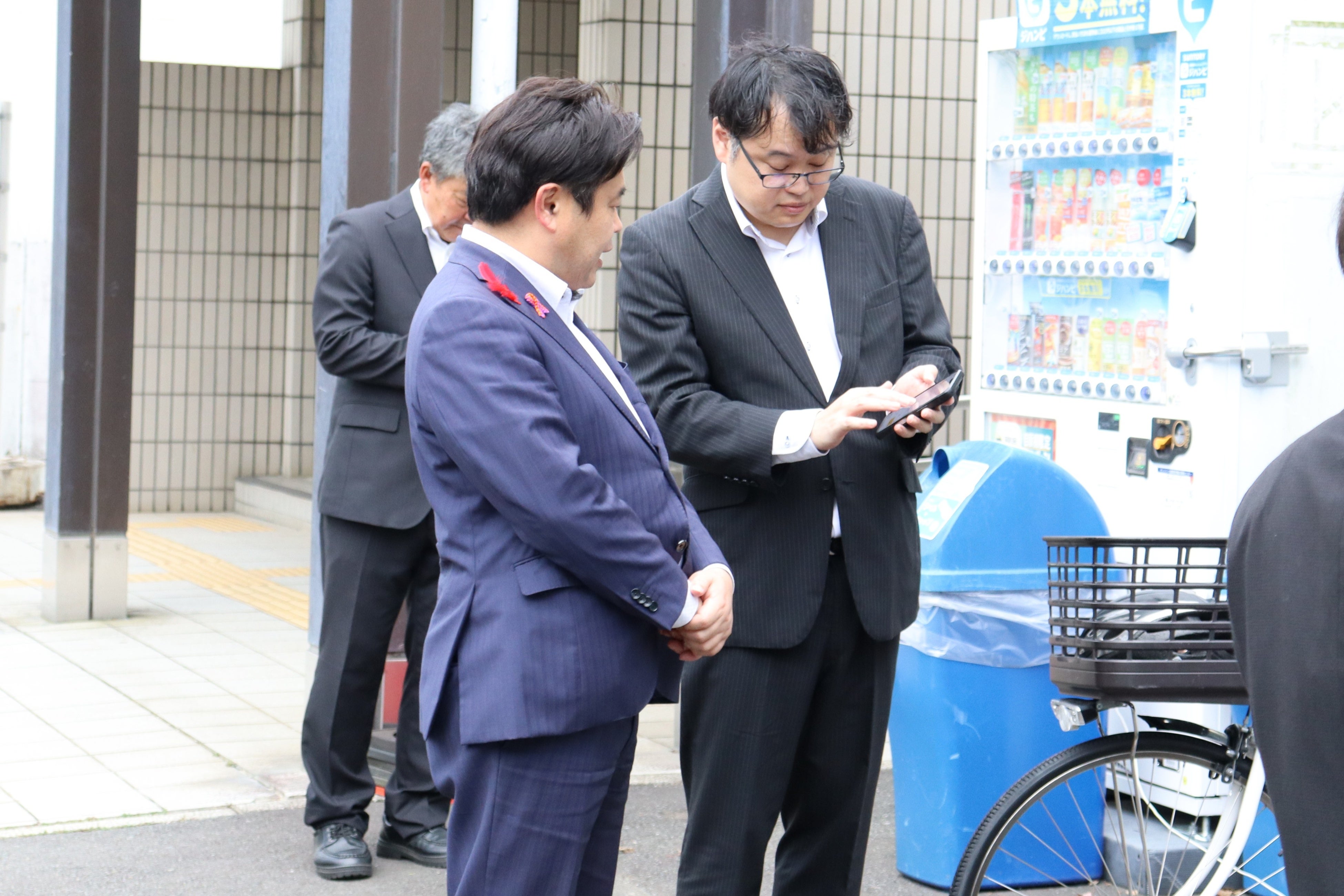 協定締結後は、厚木市役所に設置されたステーションで、OpenStreetの工藤代表が山口市長にHELLO CYCLINGのアプリの操作方法や電動アシスト自転車の利用方法を説明しました。