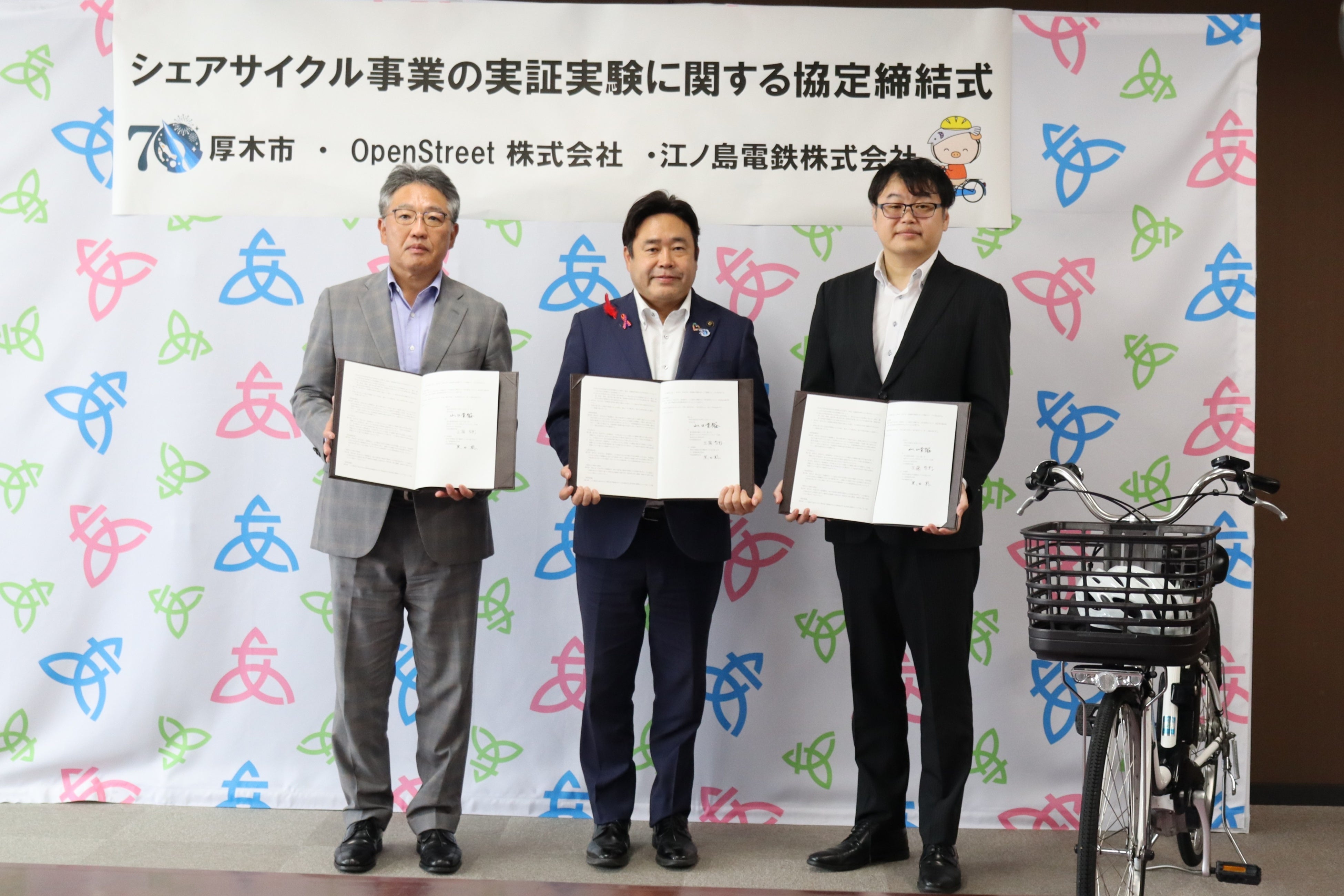 OpenStreet株式会社(本社:東京都港区、代表取締役社長CEO:工藤 智彰、以下「OpenStreet」)は、江ノ島電鉄株式会社(本社:神奈川県藤沢市、取締役社長:黒田 聡、以下「江ノ島電鉄」)、神奈川県厚木市(市長:山口 貴裕)と『厚木市のシェアサイクル事業の実証実験に関する協定(以下、「本協定」)』を締結し、国内最大級のシェアサイクルプラットフォーム「HELLO CYCLING」を活用したシェアサイクル事業の実証実験を、2025年10月6日から厚木市内で開始したことをお知らせします。