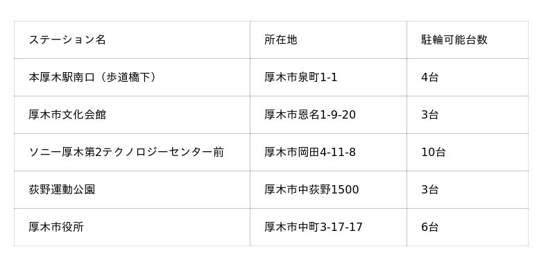 厚木市内のステーション設置場所は、こちらをご確認ください。