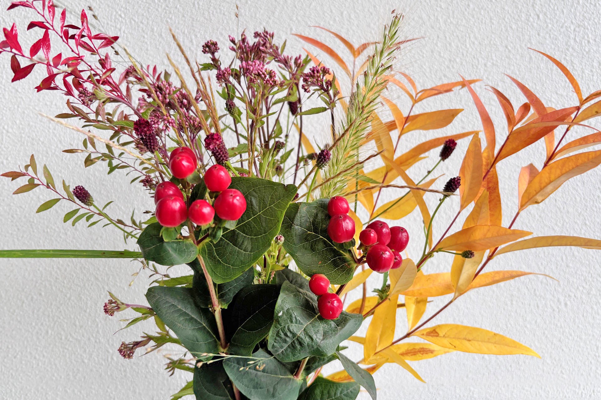 【実もの・枝もの・グラス類】…紅葉した実もの・枝もの、グラス類は秋の象徴として存在感抜群です。