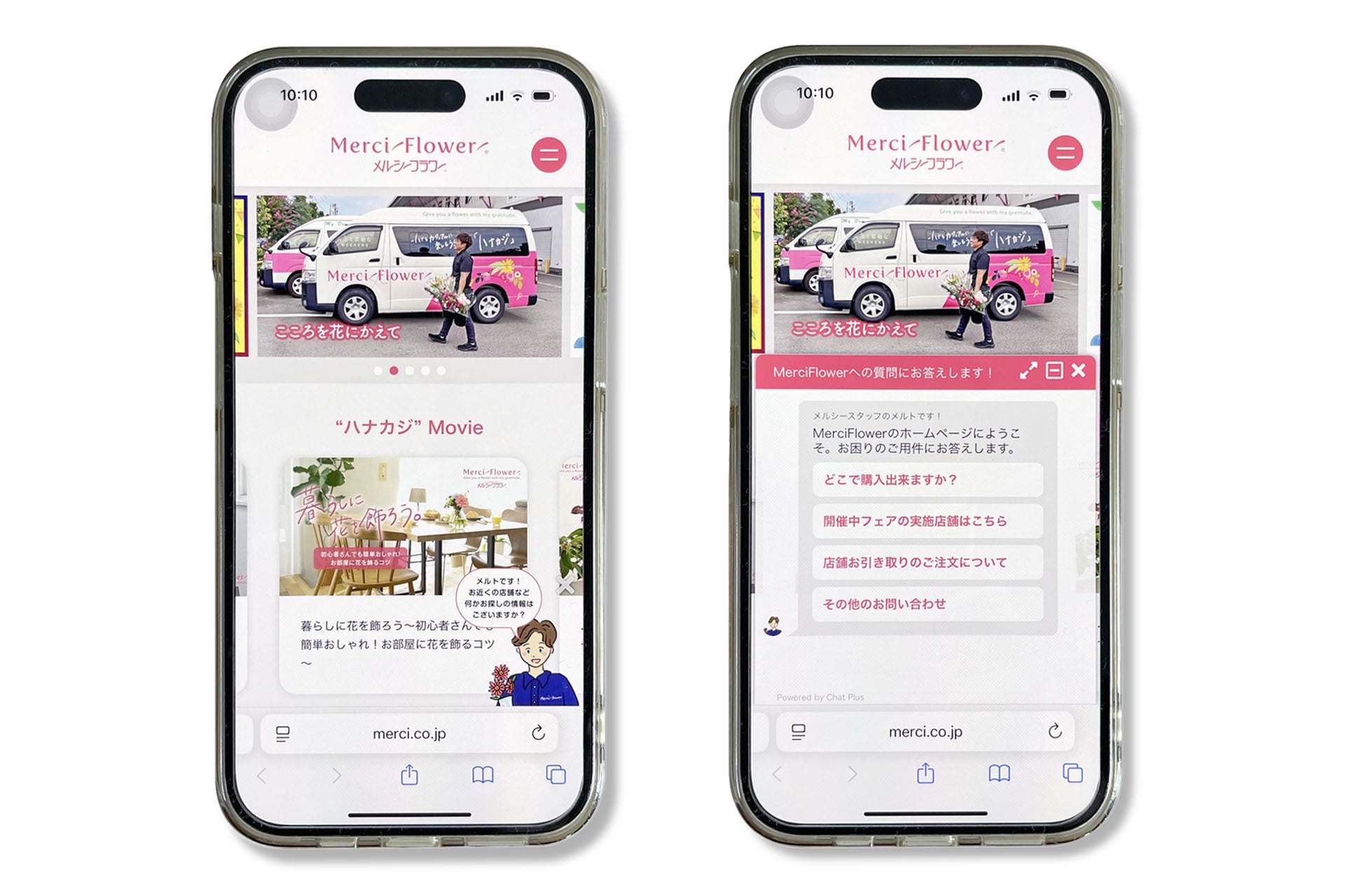 フェア開催店舗や最寄りのメルシーフラワーがお届けしているスーパーマーケットは、ホームページのチャットポッドサービスの当社イメージキャラクター『メルトくん』から検索が可能です。