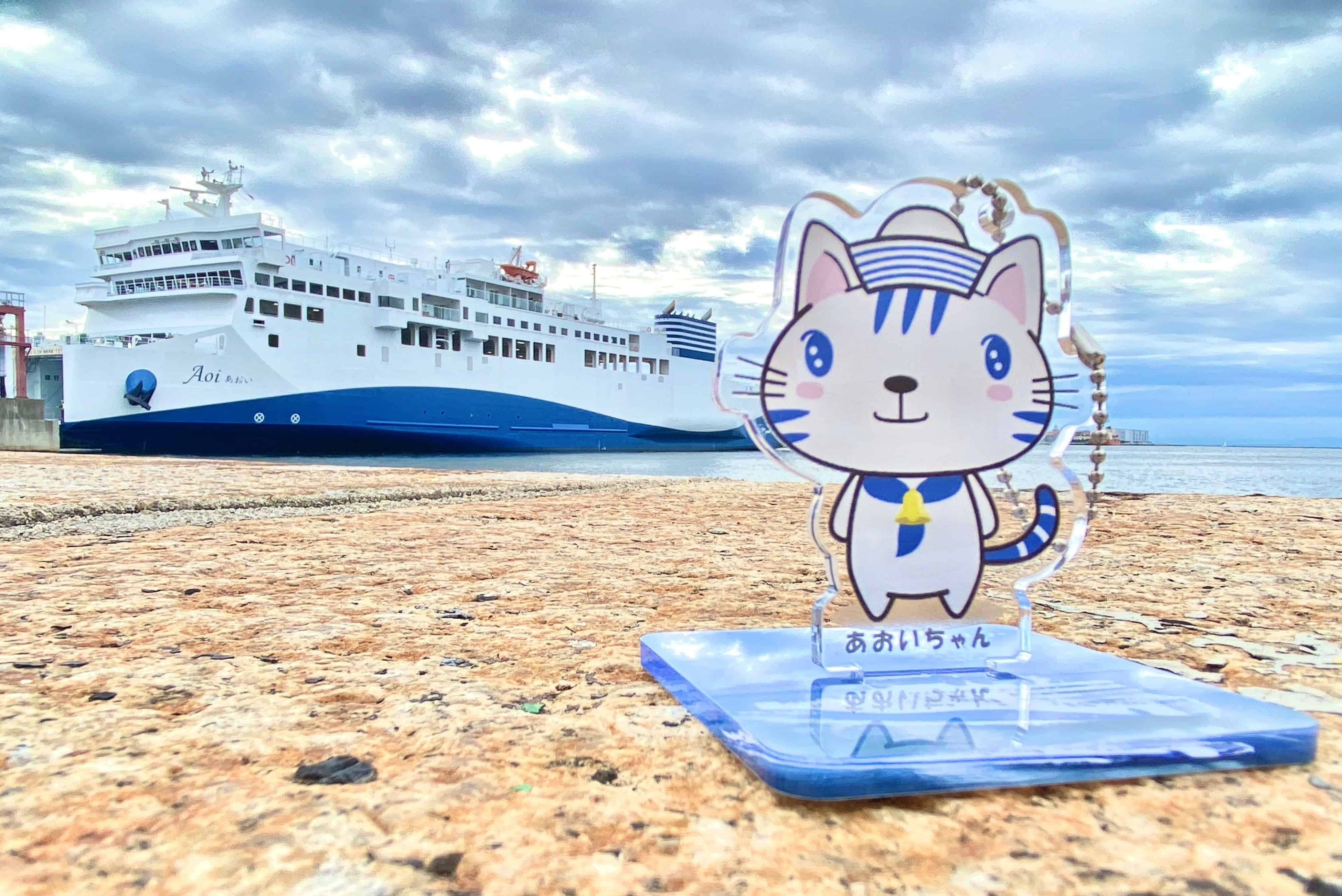 これまでの「りつりんニャンコ」「こんぴらニャンコ」に続き、船内ショップで人気のアクリルスタンドシリーズに、ついに「あおいちゃん」が仲間入りします!