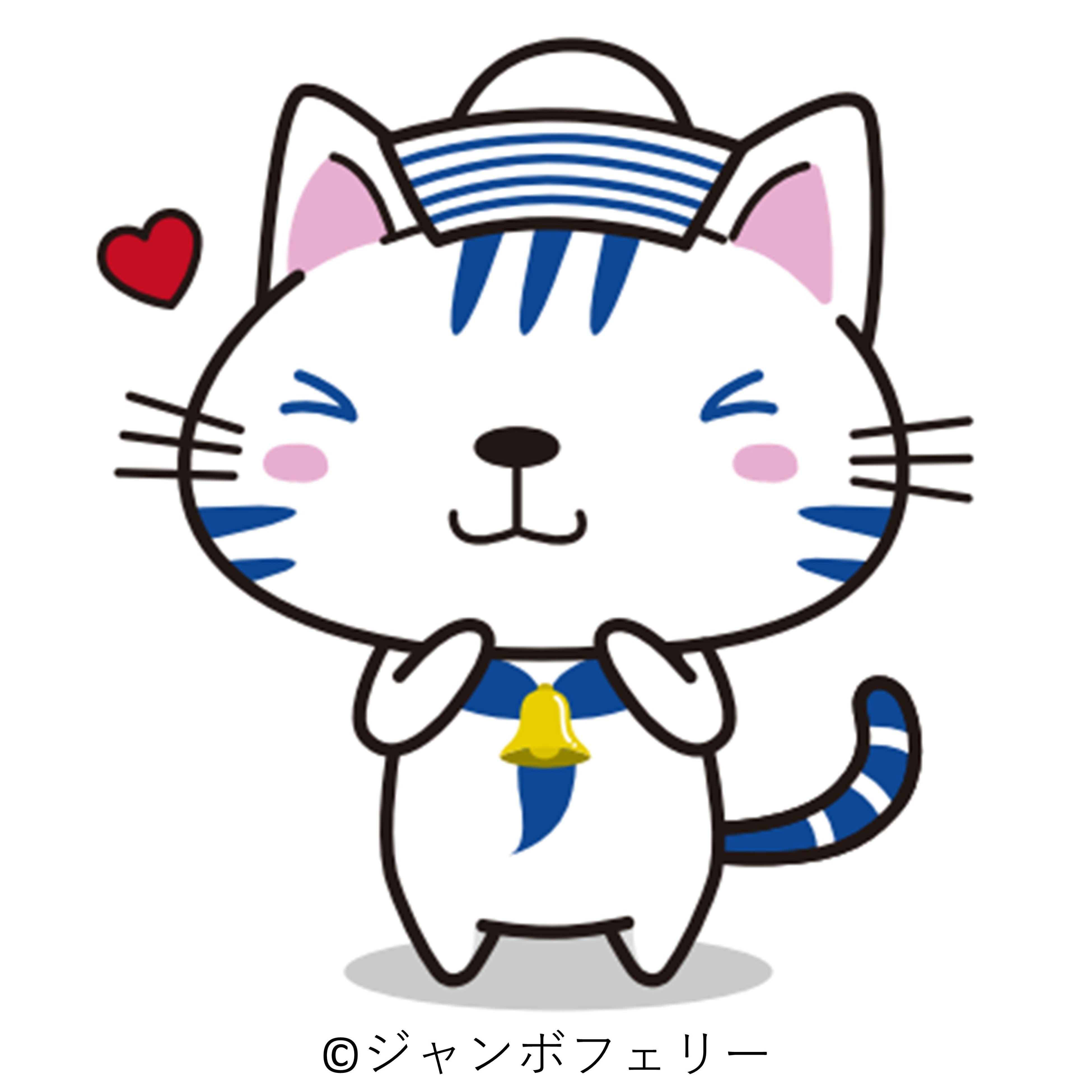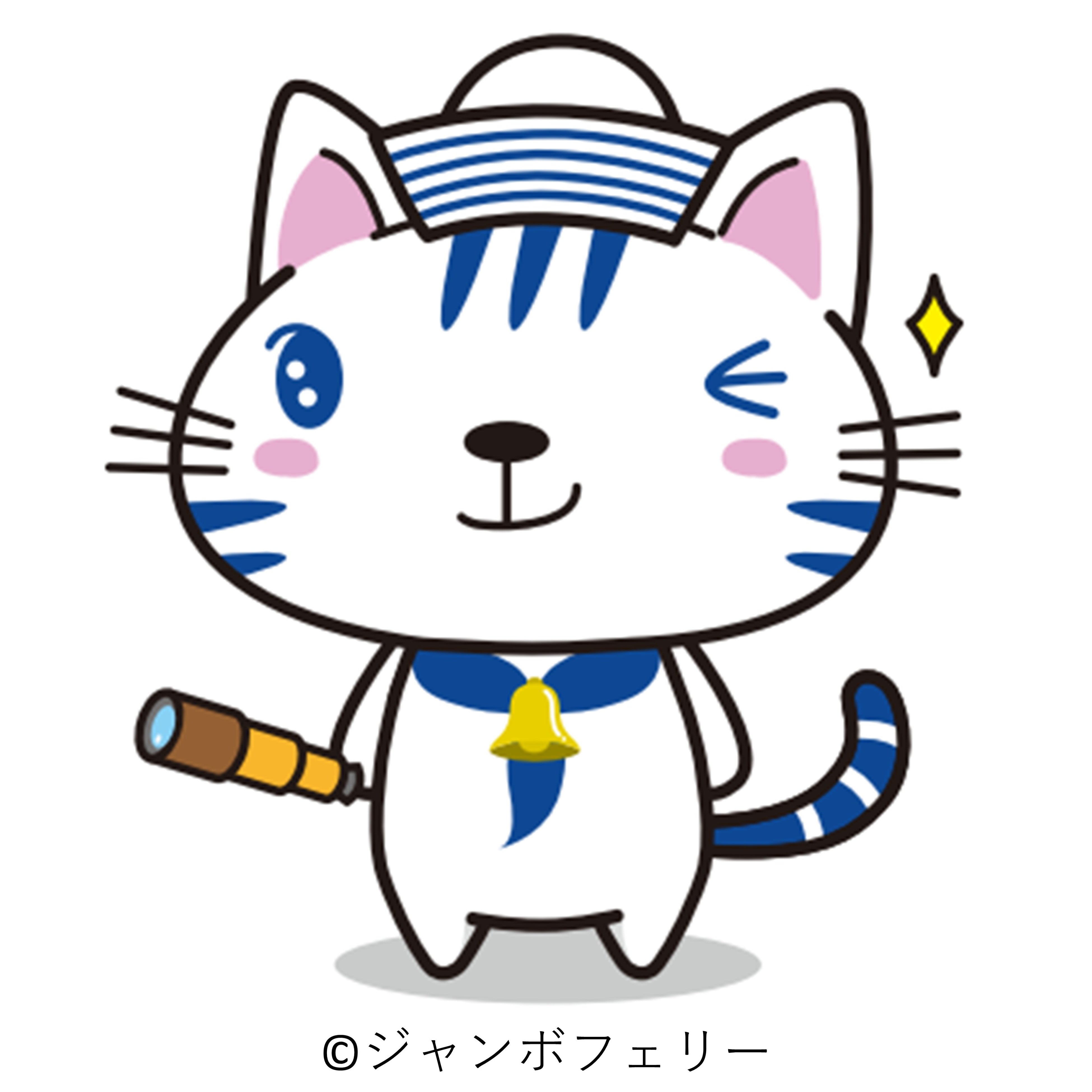 さわやかな青と白のコントラストが印象的なトラ猫、「あおいちゃん」。ジャンボフェリーの人気キャラクター「りつりんニャンコ」「こんぴらニャンコ」のおともだちとして誕生しました。