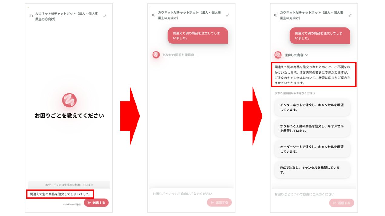 「カウネット」のECサイトにおける法人会員様と個人会員様では知りたい情報や利用シーンが異なる点に対応し、それぞれに最適化された回答を提示します。会員属性を活かしたパーソナライズ対応により、一律的な案内ではなく、一人ひとりに合った体験を提供することで、CX向上はもちろん、対応業務の効率化、ノンボイス領域の拡充を目指します。
