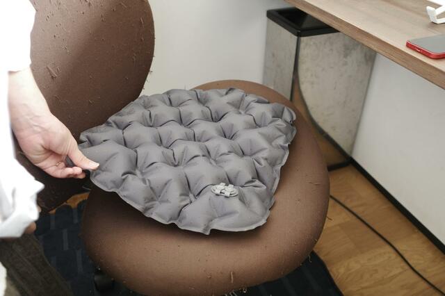 座り心地の良さの秘訣は、内部で複数に分けられた空気室。これがお尻へかかる圧力を均一に分散してくれるため、長時間座っていても負担になりにくくしてくれるんです。