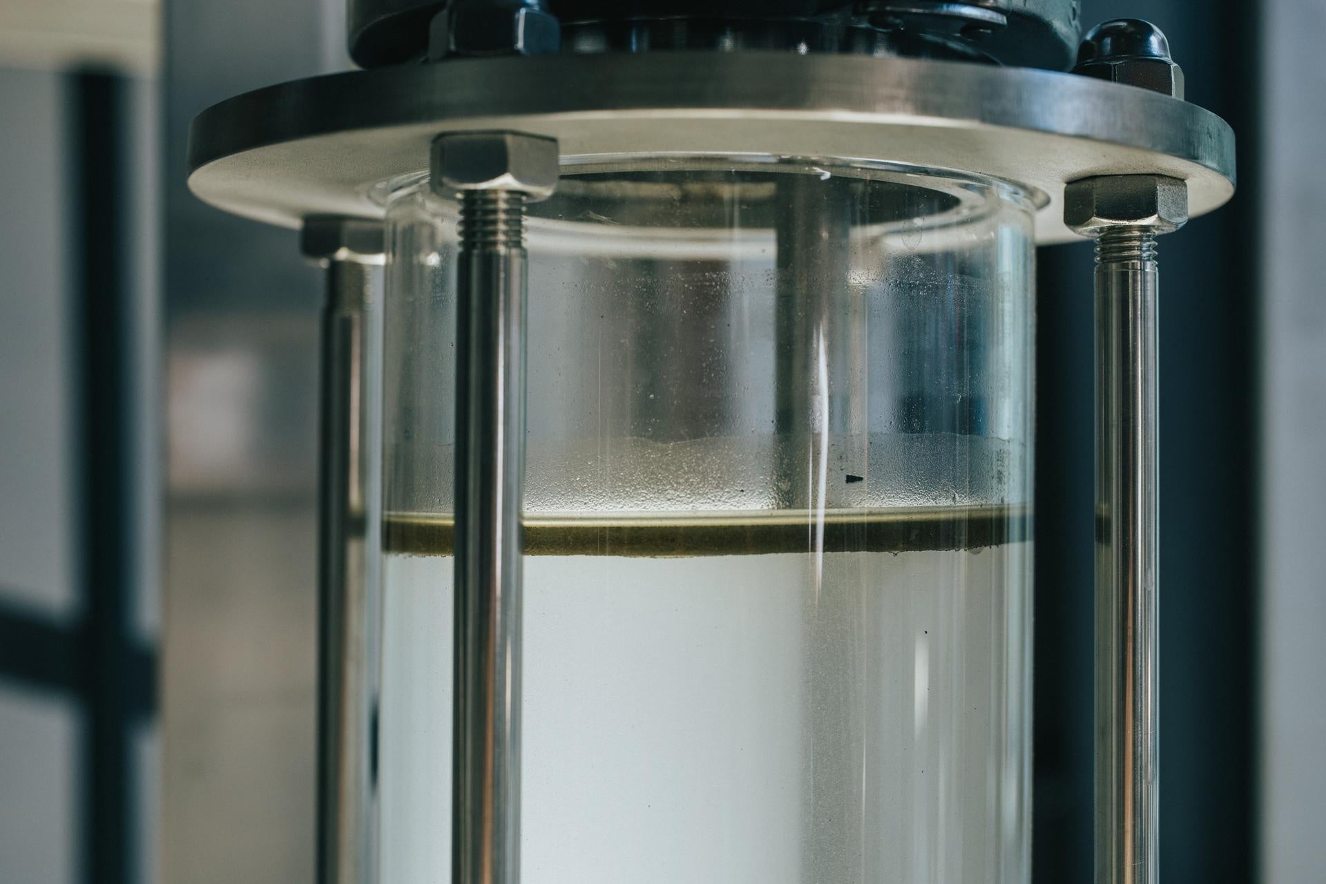 香りの元を含んだ水蒸気が冷却器で冷やされ、油と水の2層の液体となって出てきます。この油が貴重な「精油」です。水にもわずかに香り成分が含まれているため、芳香蒸留水として活用されます。
