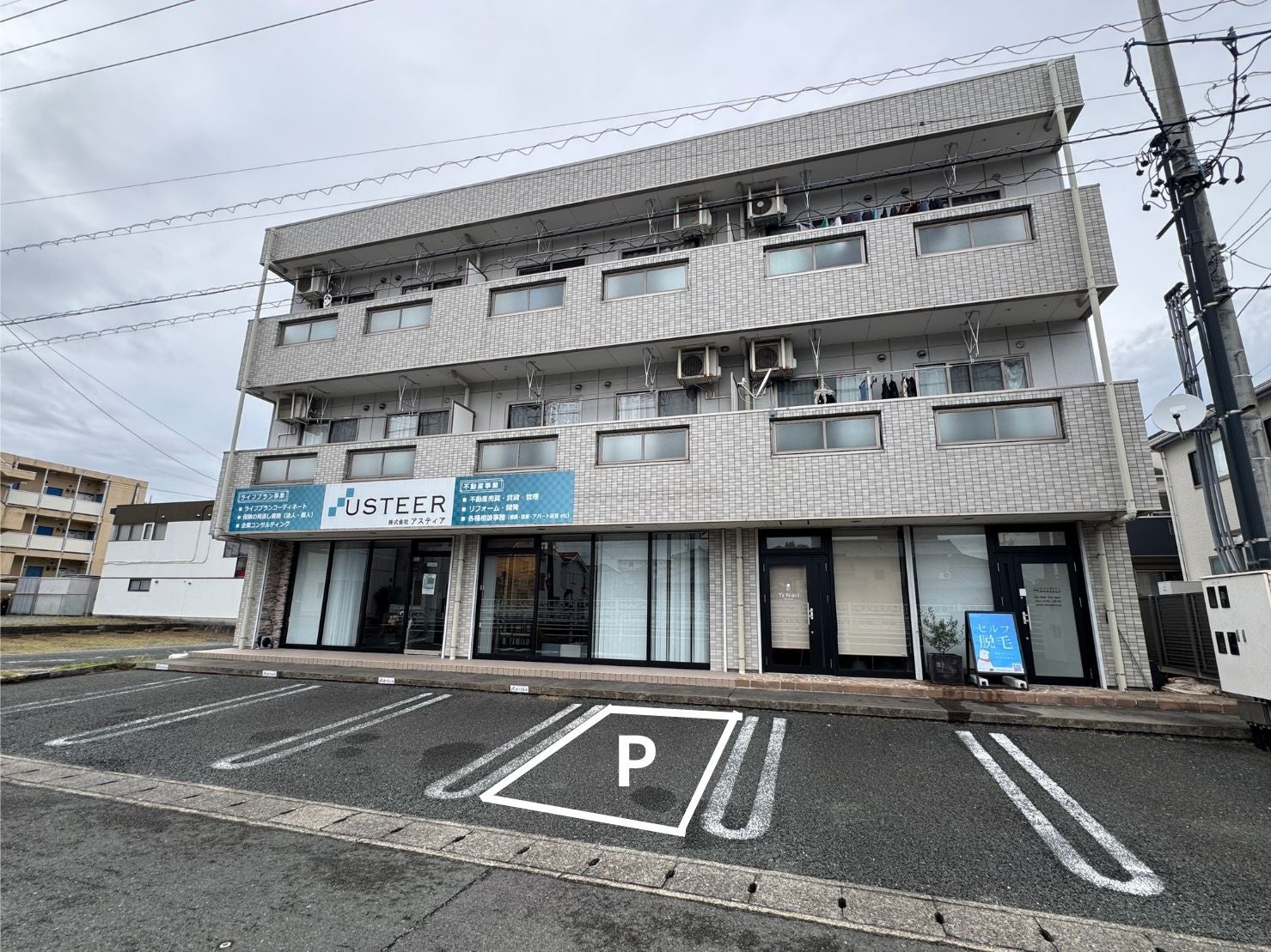 駐車場:店舗前「右から3番目区画」、および店舗裏に1台分