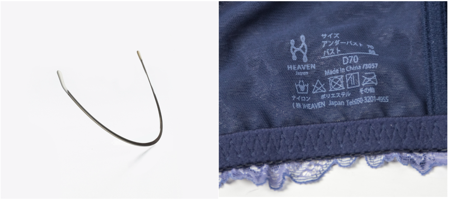 体への負担がなく着け続けたくなる、心地よい着用感にもこだわりました。カップに使用するワイヤーは、痛くなりにくいヘブンジャパン独自の3Dワイヤーを使用。取り扱い表示は、肌当たりがやわらかくチクチクしないように、生地に直接プリントする印字タグを採用しています。