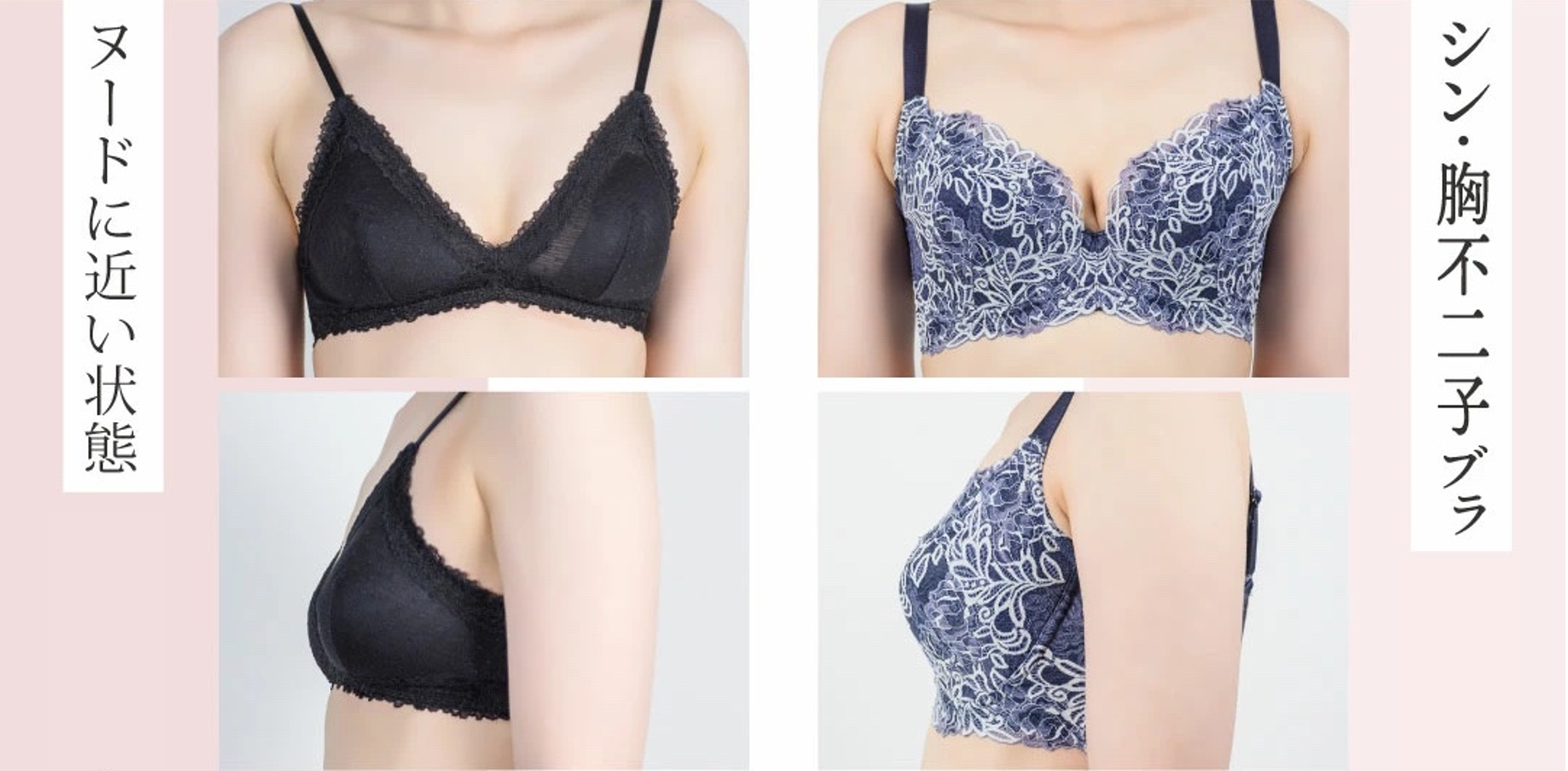 「シン・胸不二子ブラ」はそんな年齢を重ねたバストに特化したアンチエイジングブラ。加齢とともにバストの柔らかなお肉は脇や背中に逃げますが、そんなお肉をしっかりとキャッチし、「サイドすっきり&ツンと上向き」の若々しい立体的なバストをメイクする機能と、補整下着とは思えないおしゃれなデザインで、2022年7月の発売直後から大人気となり完売サイズが続出いたしました。