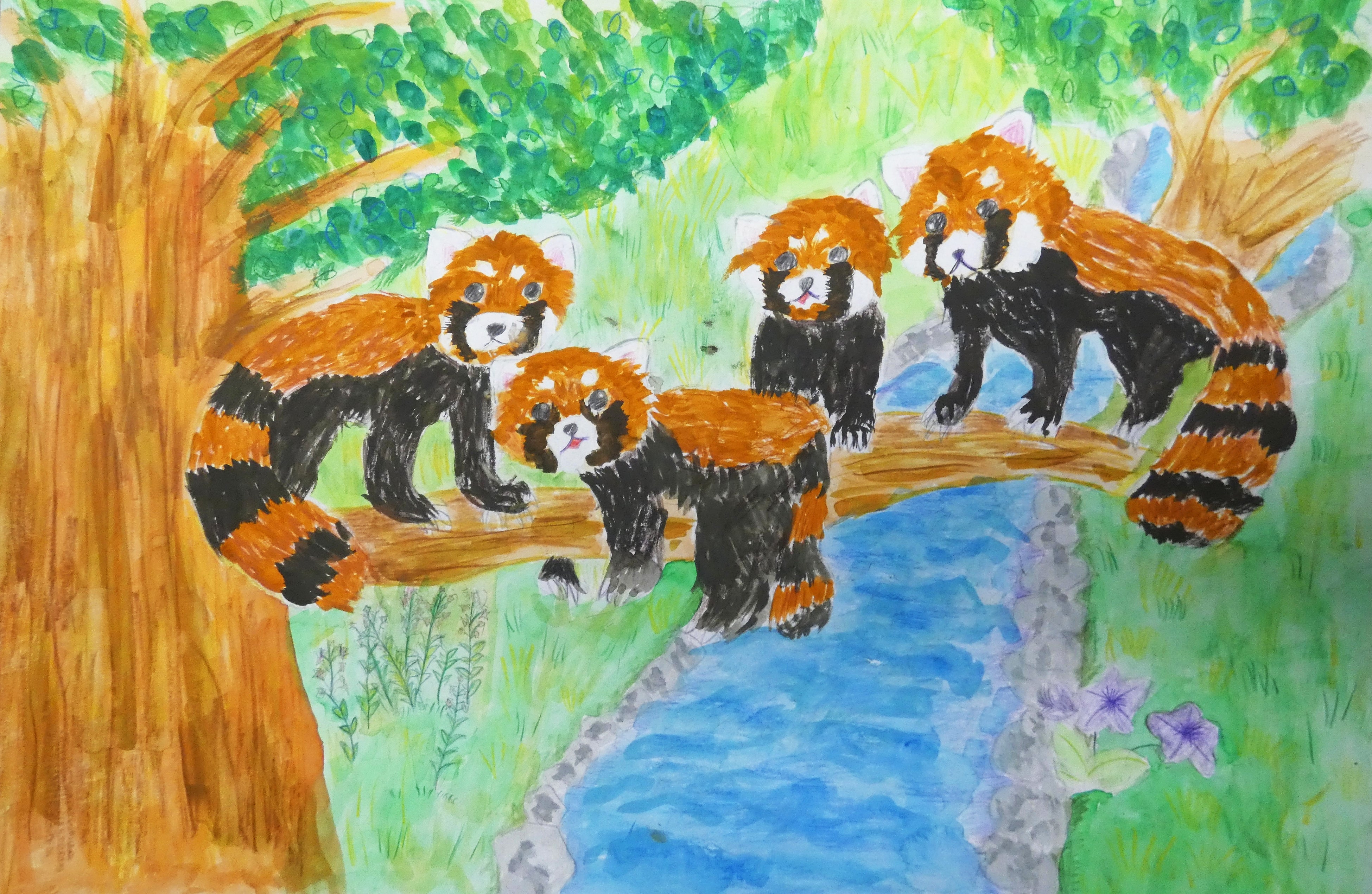 2025年のテーマは「きれいな空気・水と生きもの」。きれいな空気や水は、生きものが健康に暮らすために大切なものです。これからも空気や水をきれいにするために、自分たちでできることや、生きものが元気に暮らす様子などを自由に描いた作品を募集しました。作品にはオオサンショウウオやレッサーパンダ、ジンベイザメなどの絶滅が危ぶまれる生きものをテーマにした絵画もあり、子どもたちの生きものを思いやる気持ちが伝わりました。