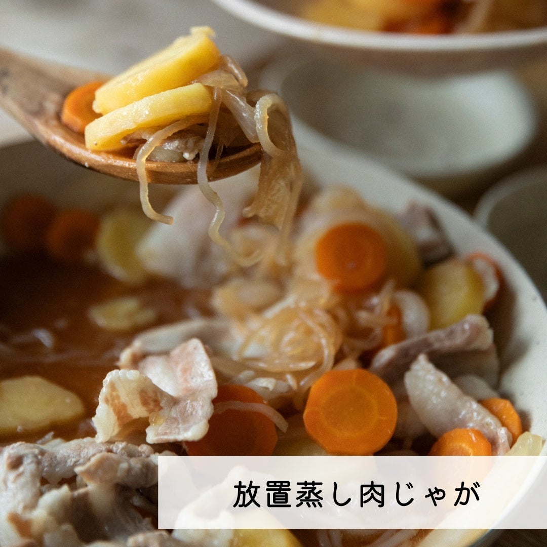 素材そのものの水分でじんわり蒸すから、お肉やお魚はしっとりジューシー。野菜のうまみも最大限に引き出され、カサが減るからたっぷり食べられます。ほとんど油を使わないので、ヘルシーなうえに、コンロまわりが汚れないのもうれしいところ。洗い物も激減します。