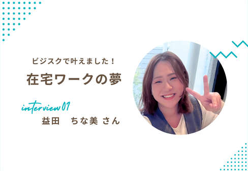4人の子育てと在宅ワークを両立「ママであること」を強みに変えて益田ちな美さん(4児のママ)は、子どもの昼寝や登園時間を活用して学びを継続。卒業後はInstagram運用ディレクターとして複数のクライアントを担当し、「ママであることがキャリアになる」と実感しています。ビジスク卒業生のコミュ長も兼務し、卒業生の交流活性化にも貢献。