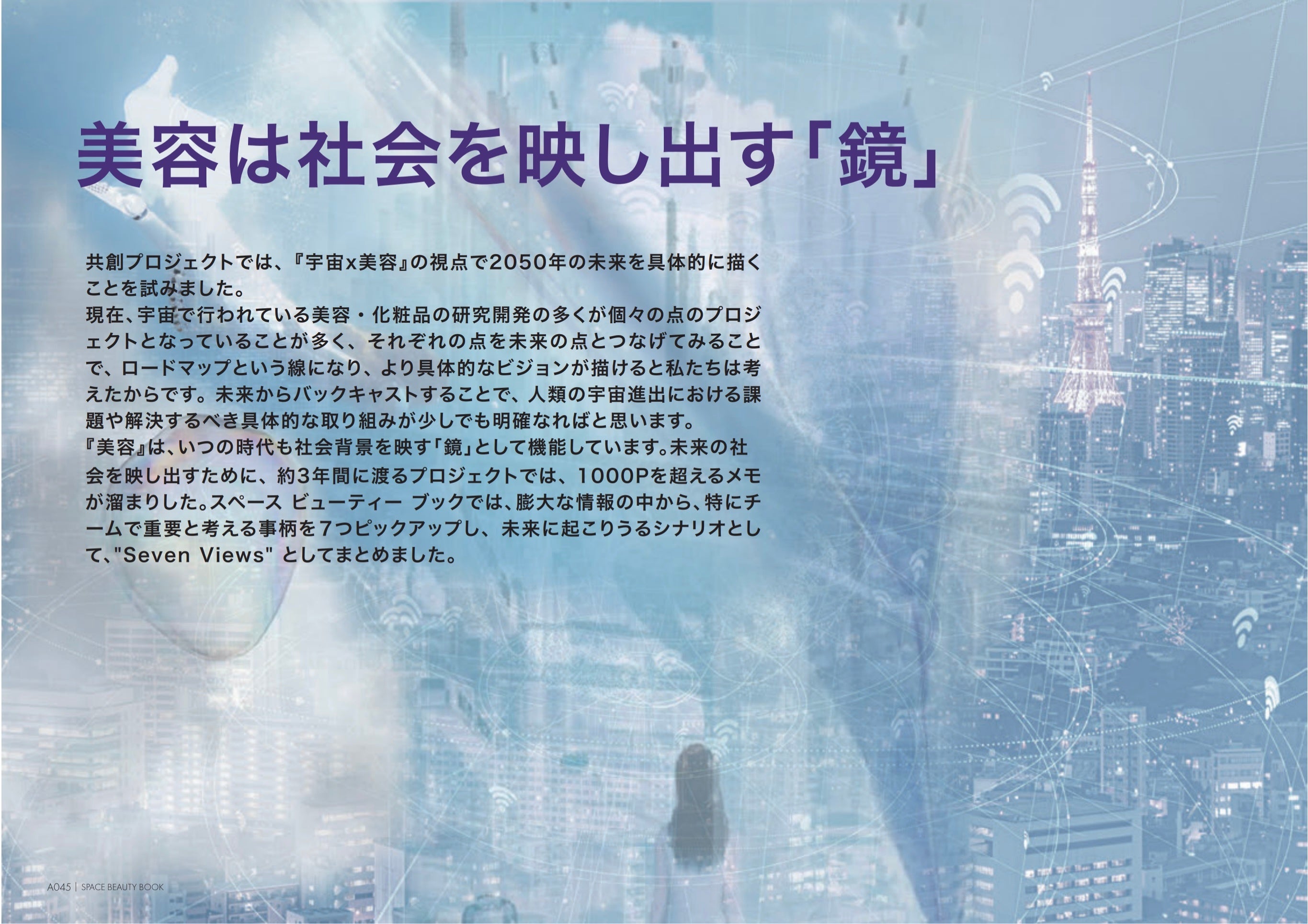 国際宇宙ステーション(ISS)や月面開発、民間宇宙旅行が現実となる時代に、美容を単なる外見を整える行為ではなく「人間らしい生活(QOL/ウェルビーイング)の基盤」として再定義し、未来社会における役割を描き出しています。