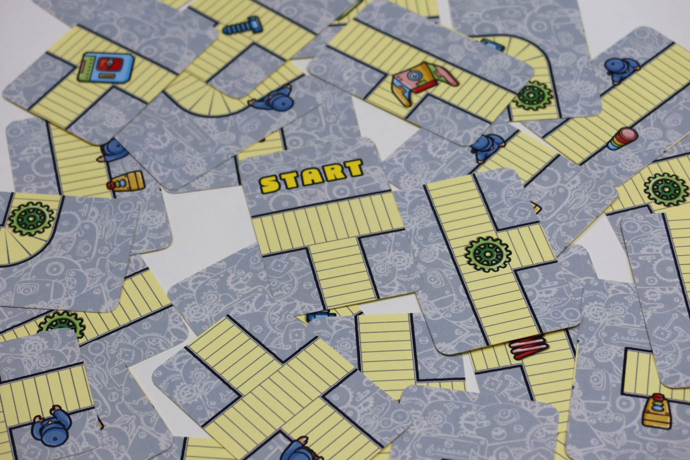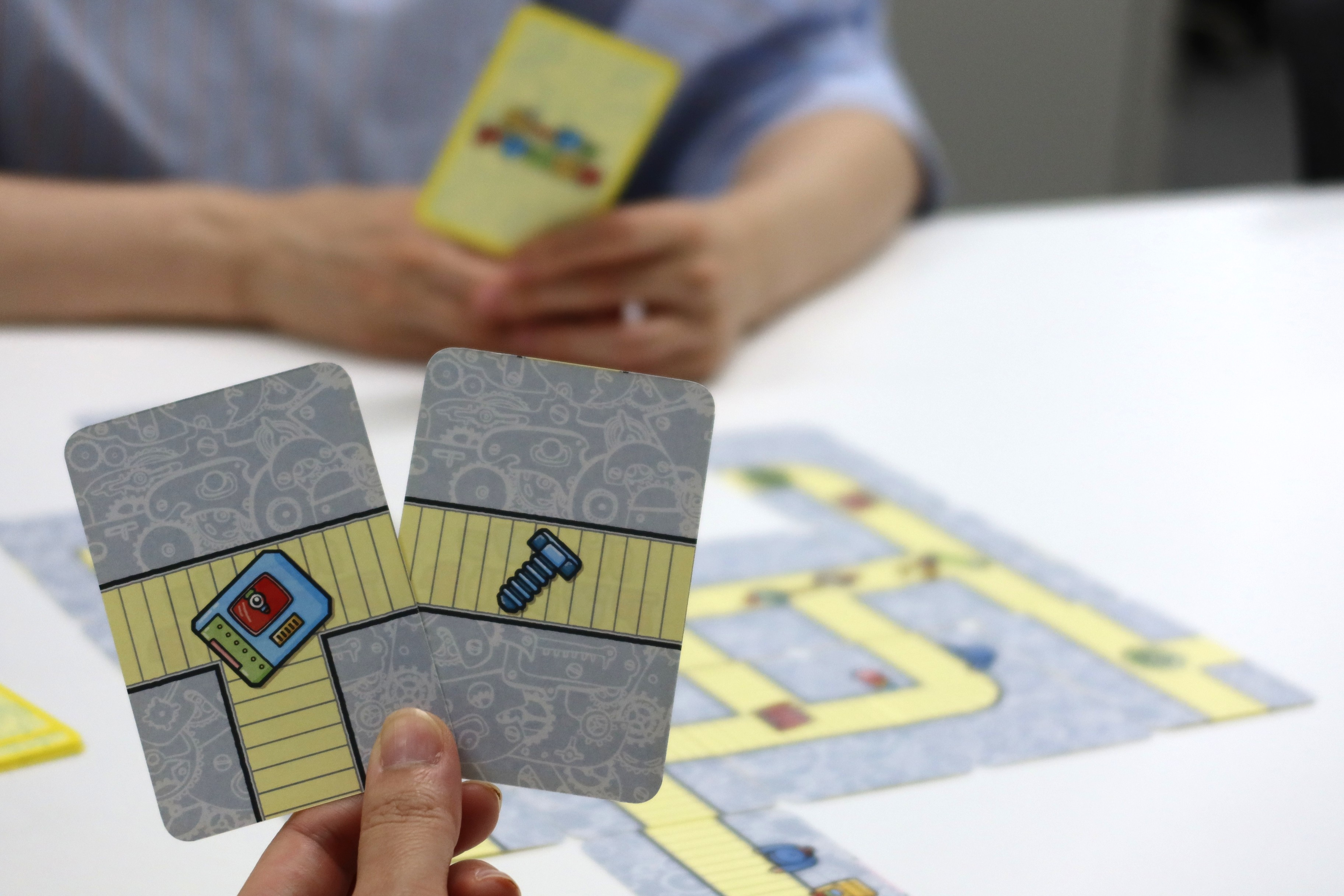 生産ラインを動かして、パーツを運び・組み立て、そして製品を完成させる。この流れを、カードゲームで表現しました。