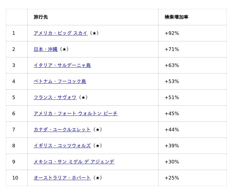 また、これらの旅行先のうち「ビッグ スカイ」、「沖縄」、「サヴォワ」、「ユークルエレット」、「コッツウォルズ」、「ホバート」の6か所は、エクスペディアの新しい「スマート・トラベル・ヘルスチェック」に認定されています。この旅行業界初となる制度は、旅行者にとって魅力的な体験を提供しつつ、観光が地域に過度な負担をかけないよう配慮している旅行先を評価する仕組みです。世界旅行ツーリズム協議会(WTTC)の考え方をもとに作られており、オーバーツーリズムの軽減にも役立っています。