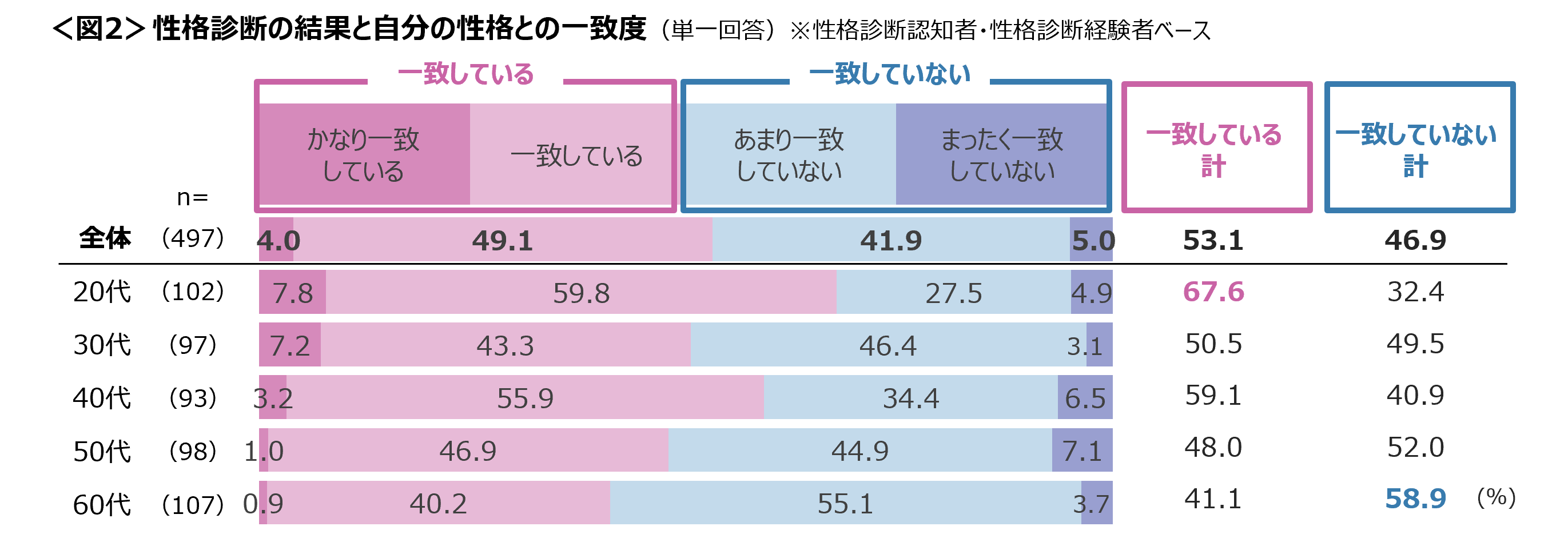 診断結果と自分の性格は、53.1%が「一致している」と認識。
