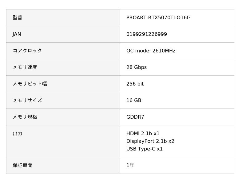 PROART-RTX5070TI-O16G | ASUS(エイスース) NVIDIA GeForce RTX 5070 Ti トリプルファン搭載 オーバークロック グラフィックボード
