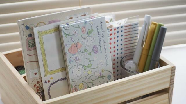 手帳やノート、手紙を書くときに使う文房具をまとめて収納するのもおすすめです。